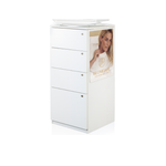 Exposure and lockable storage cabinet on wheels, B45 x D45 x H96 cm.