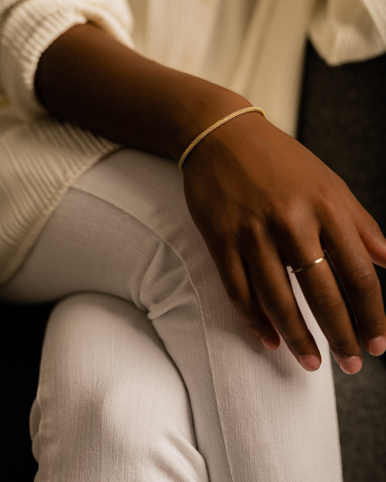 Bracelet developed in consultation with skin specialists, with a gold or silver coloured skin friendly coating applied on very high quality stainless steel (316L). Our unique coating makes the bracelet up to 300 timers safer, compared to the same piece of jewellery without this coating. Therefore, our skin friendly jewellery is suitable for everybody, even if one have nickel allergy.